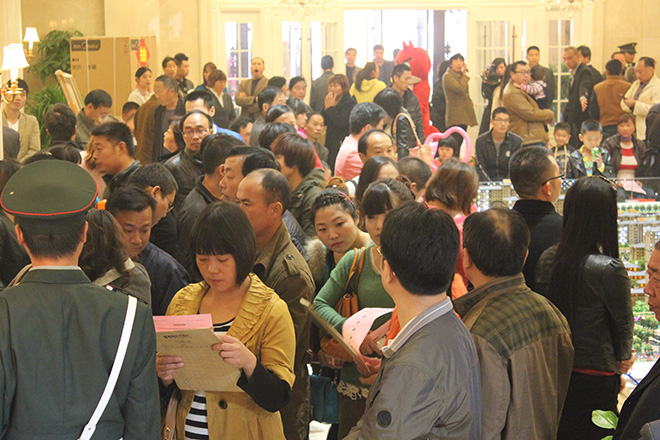 早上8點,筆者到達售樓中心時,已經(jīng)有許多客戶捷足先登,銷售現(xiàn)場人聲鼎沸。9點整,瑞貝卡集團漯河瑞貝卡房地產(chǎn)開發(fā)公司總經(jīng)理鄭程遠熱烈致辭,并宣布選房活動正式開始。氣氛瞬間變得熱烈緊張,現(xiàn)場客戶開始按捺不住,個個都屏息聆聽主持人報出的號碼,生怕錯過選購自己心儀房源的良機。